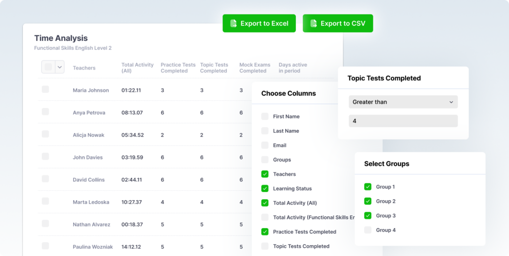 Remove complicated admin with our Functional Skills Entry Level software. Manage cohorts, track learner performance, and export ESFA and Ofsted-compliant reports, all from one central dashboard.